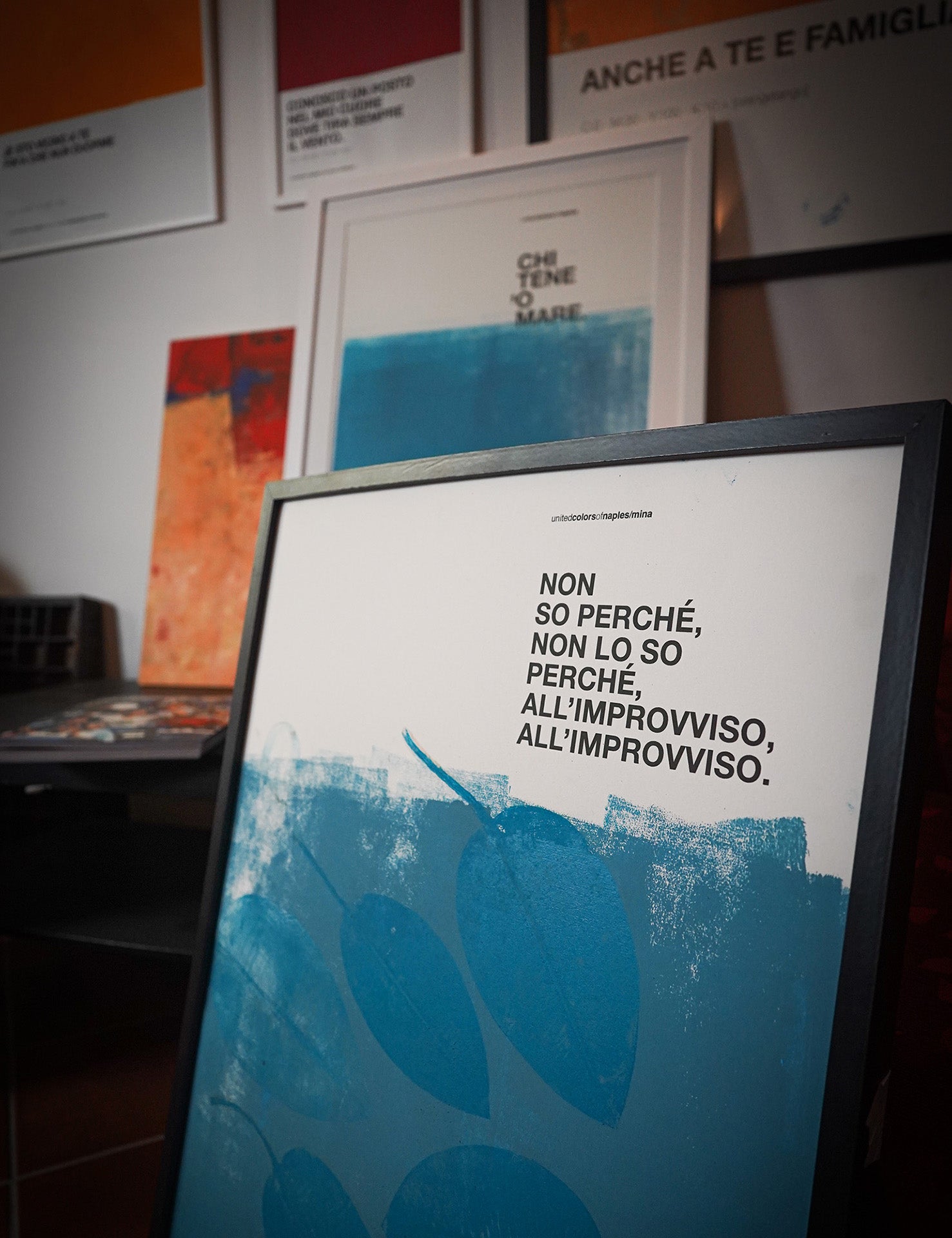 LE OPERE POSTER SONO CREATE TUTTE A MANO. OGNI OPERA POSTER È UN PEZZO D'ARTE UNICO, CREATO SOLO PER TE. OGNI OPERA POSTER È FIRMATA, DATATA E PUNZONATA UNITED COLORS OF NAPLES.
