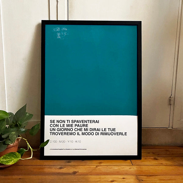Un'opera unica merita una base d'eccellenza. Per questo utilizziamo la carta Acquerello White delle storiche cartiere Fedrigoni, un supporto che trasforma un semplice poster in un oggetto scultoreo.